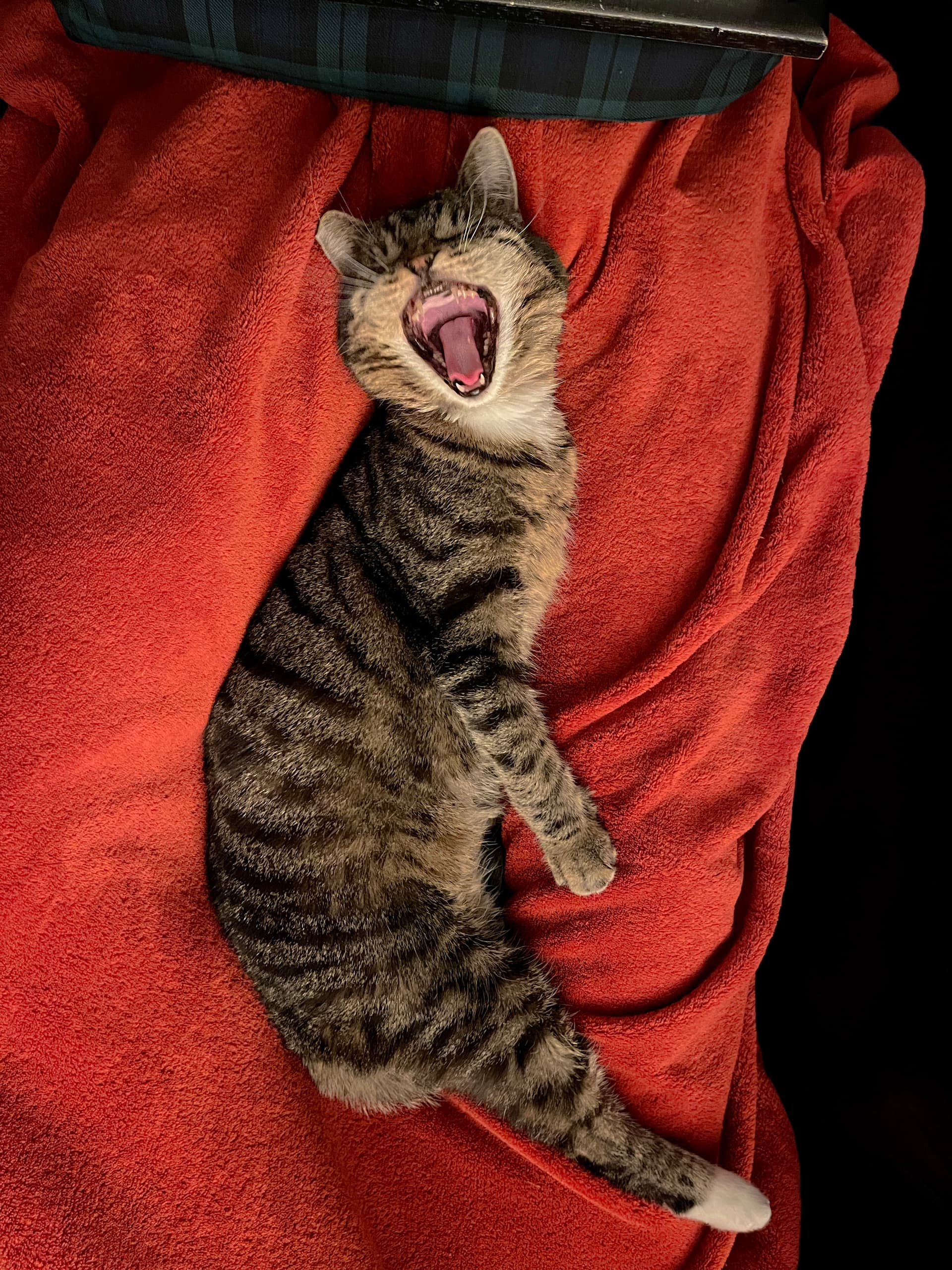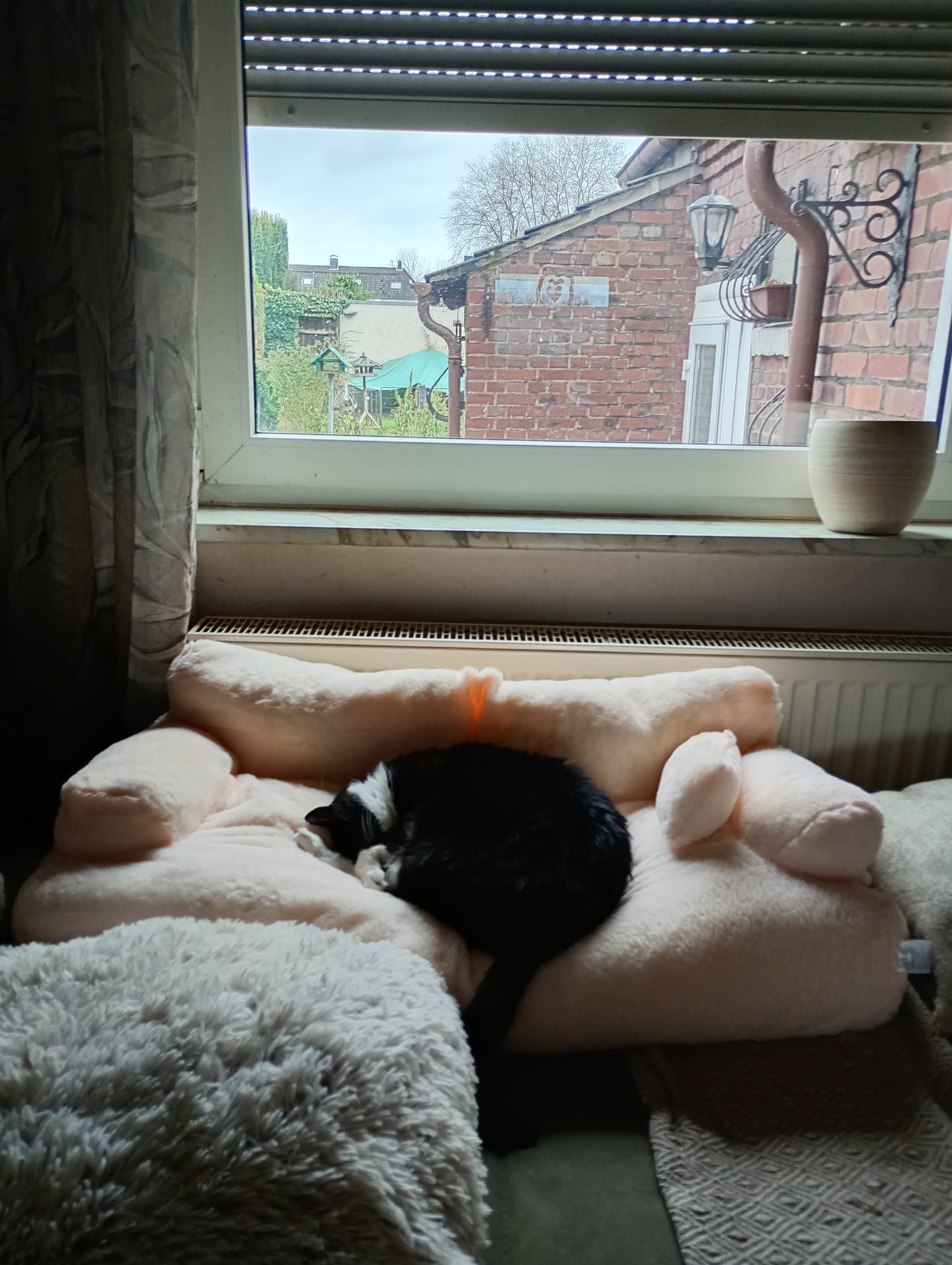 Okay, hier Trudys Beitrag zum heutigen, durch die tolle Adventsgeschichte ausgelösten Cat-Day, um zu beweisen, dass Katzen kaum Platz beanspruchen. Es sei denn … sie werden … WACH.