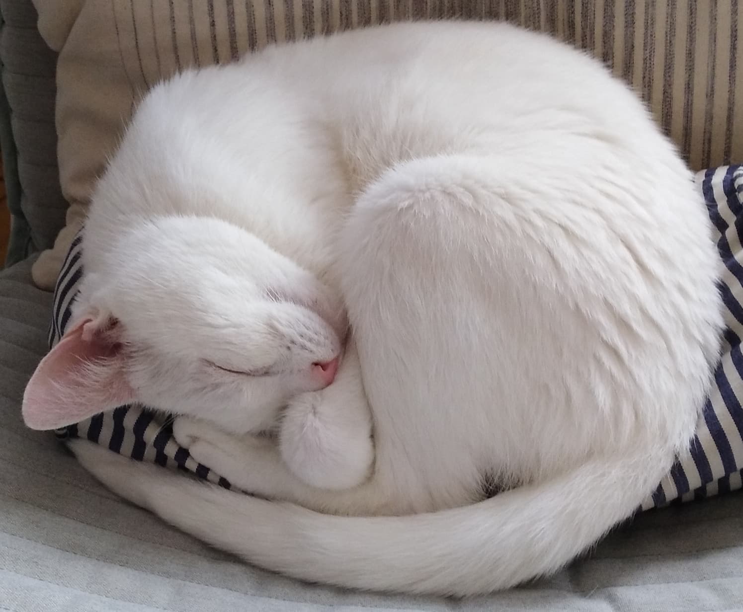 So ein kleines „Schwarzes“ lebte zuvor noch viele schöne Jahre bei uns. Ein Kater aus dem Tierheim und auch Trudy wurde aus ‚schlechten Verhältnissen‘ rausgekauft. Sie war unterernährt und niemand hatte bemerkt, dass sie stocktaub, pardon, gehörlos ist, wie so viele weiße Katzen mit diesem Gendefekt.