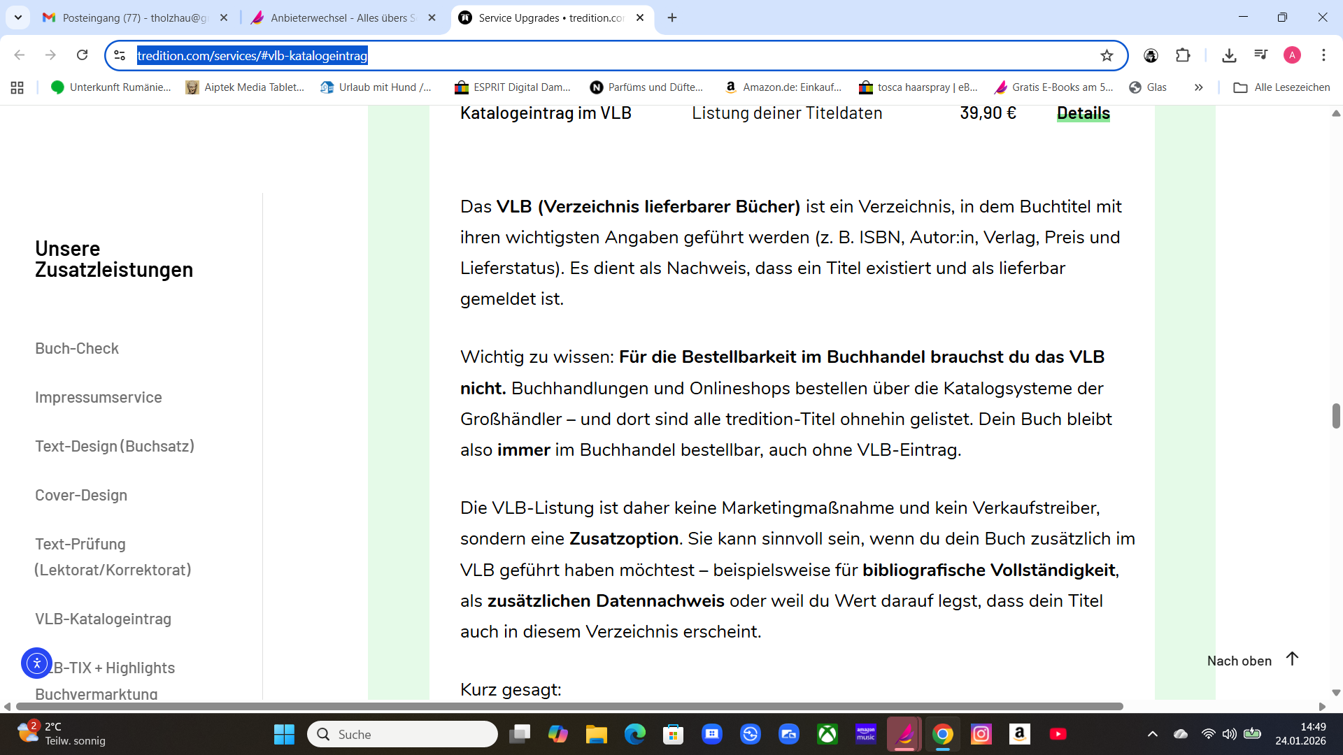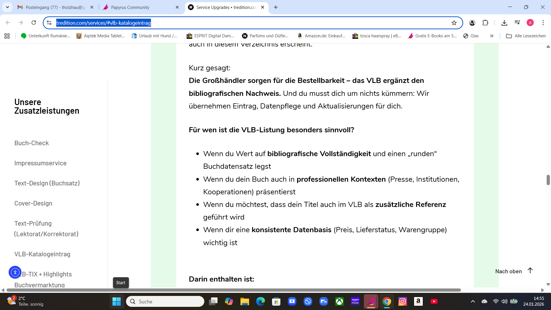 Ich persönlich finde es unerlässlich, im VLB gelistet zu sein.