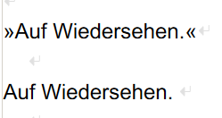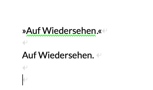 Schreibe ich „Auf Wiedersehen“, als wörtliche Rede, wird dies mir dies angemeckert.