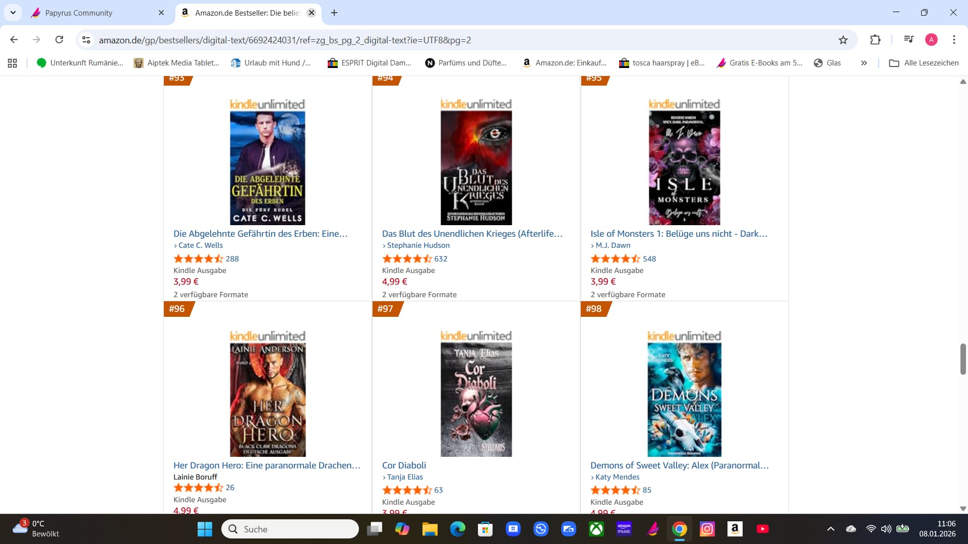 Ich bin zum ersten Mal in der bezahlten Top 100 bei Amazon im Kindle-Shop. Unter Liebesroman- Dämonen und Teufel