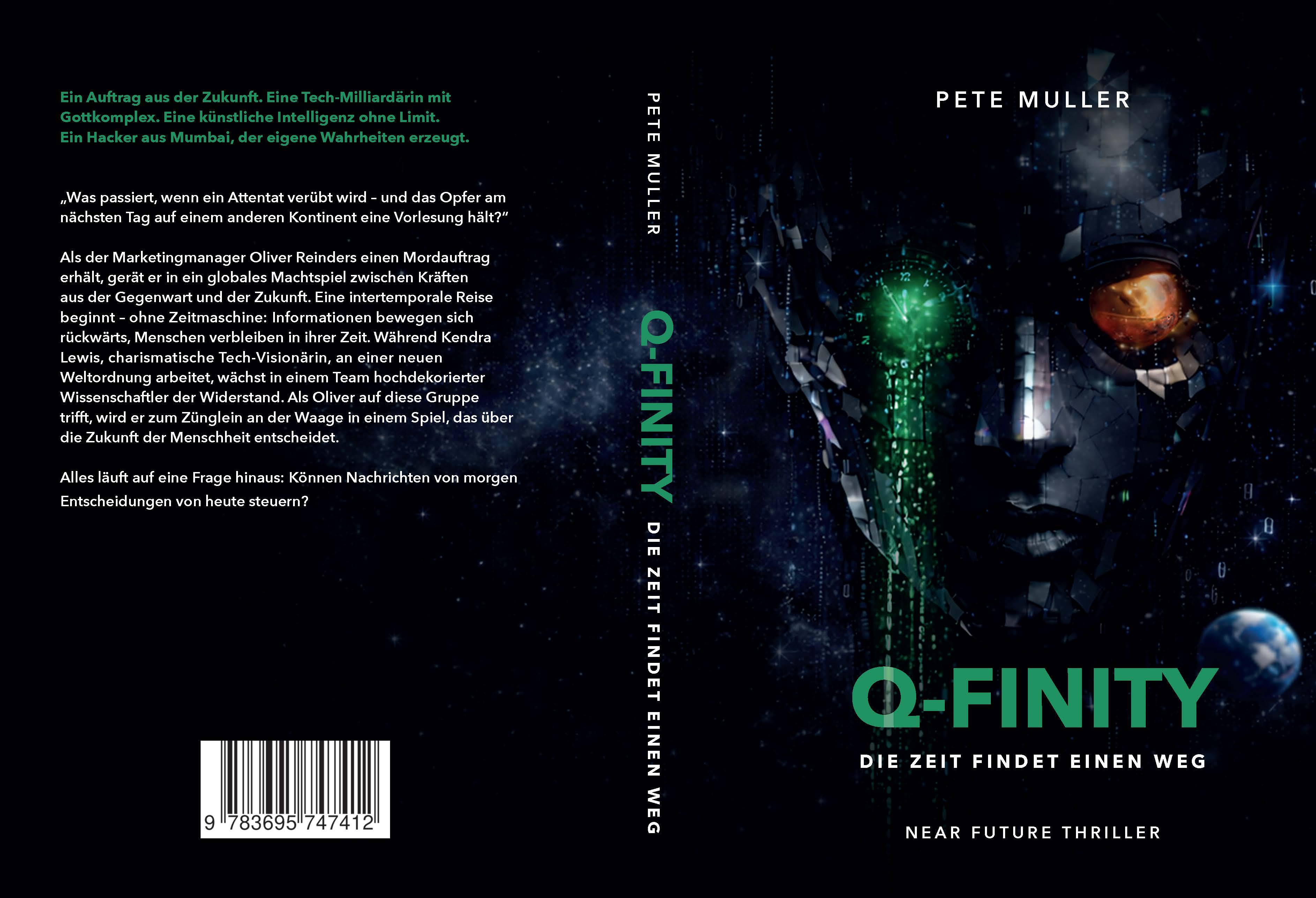 ich habe mich jetzt für diese Variante entschieden. Dort ist, wie von Euch vorgeschlagen, ein „Zeitelement“ subtil eingebaut. Die Matrix läuft aus der Zeit, was auf den Datenstrom anspielt. Zudem wird im Buch beschrieben, das „Big Q“ - der Quantenrechner von Kendra, einen weiblichen Algorithmus hat.