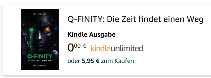 Ab morgen 12 Uhr US PST (wann auch immer das sein wird) kann man für 5 Tage Q-finity kostenlos herunterladen. Ich glaube, das ist haben die meisten von Euch ebenfalls so gemacht, damit das Buch ein wenig Traffic erhält.