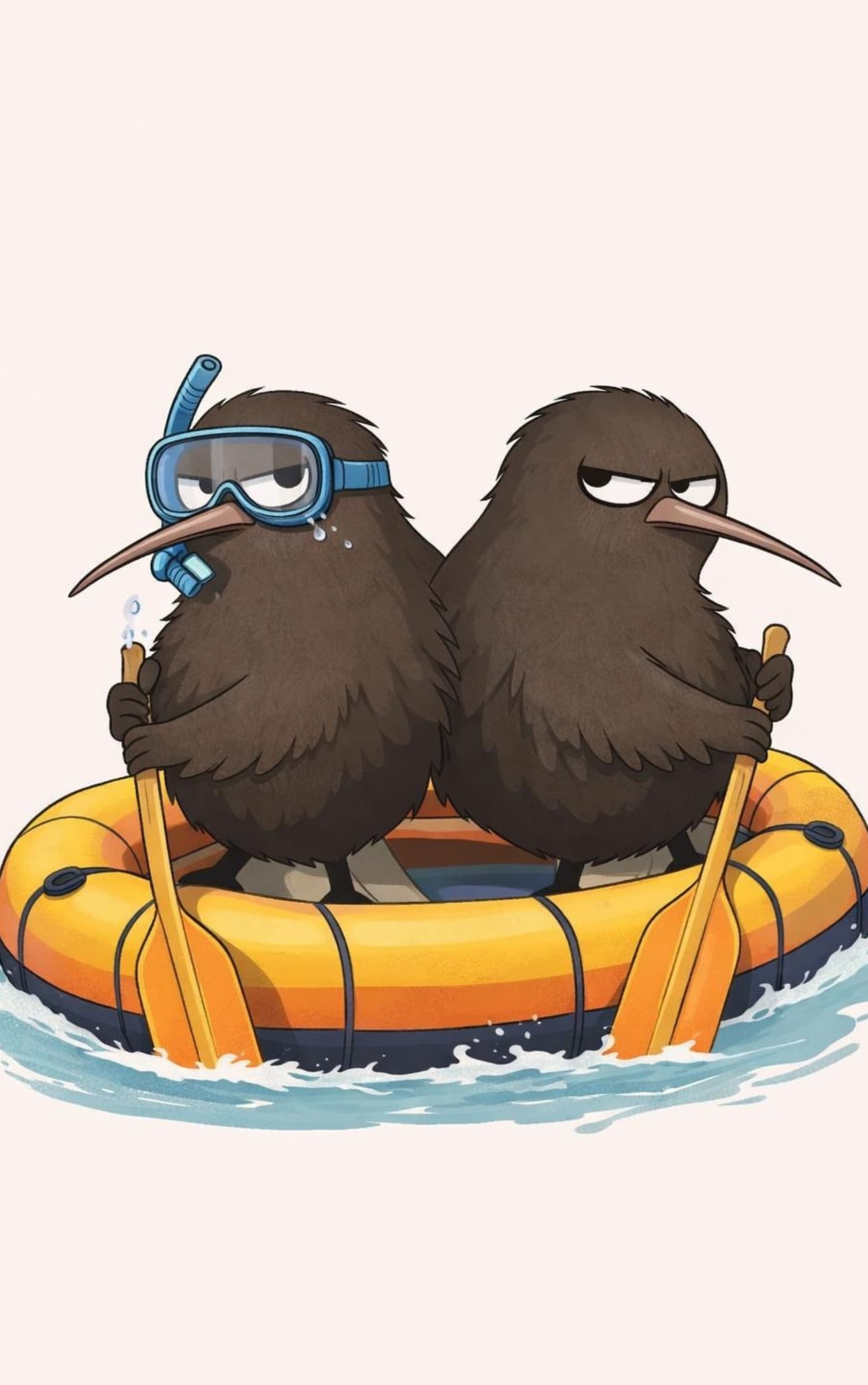 Wenn es sich um eine Analogie zu einem Pärchen handelt, dann wäre es sinnvoll, die beiden Kiwis optisch unterscheiden zu können. So wirkt es immernoch wie zwei Persönlichkeiten der Selben Figur.
