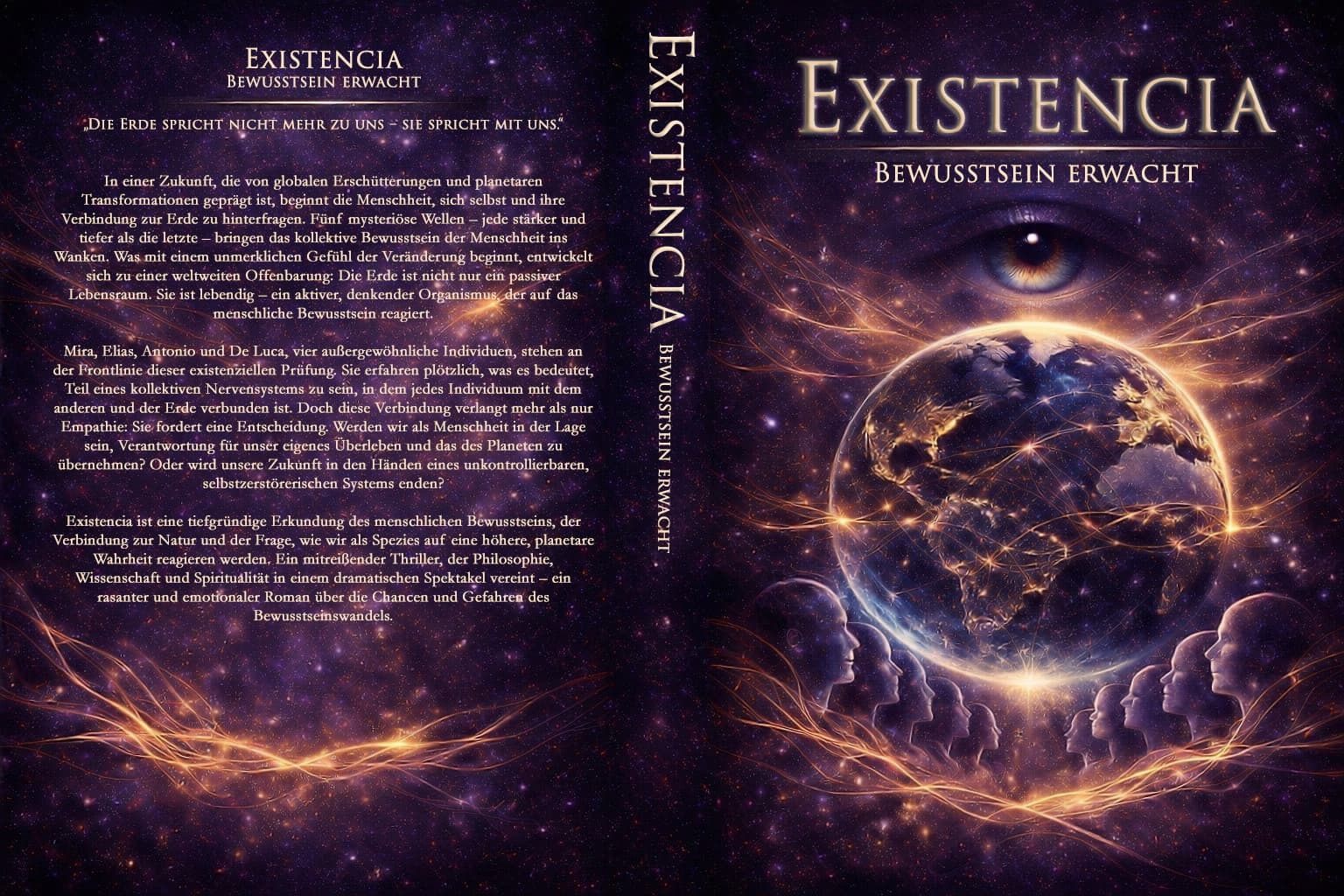 Beim zweiten Cover ist der Hintergrund besser. Statt das Auge höher könnte man die Erde etwas kleiner machen. Dann kleben die Köpfe und das Auge nicht mehr dran.