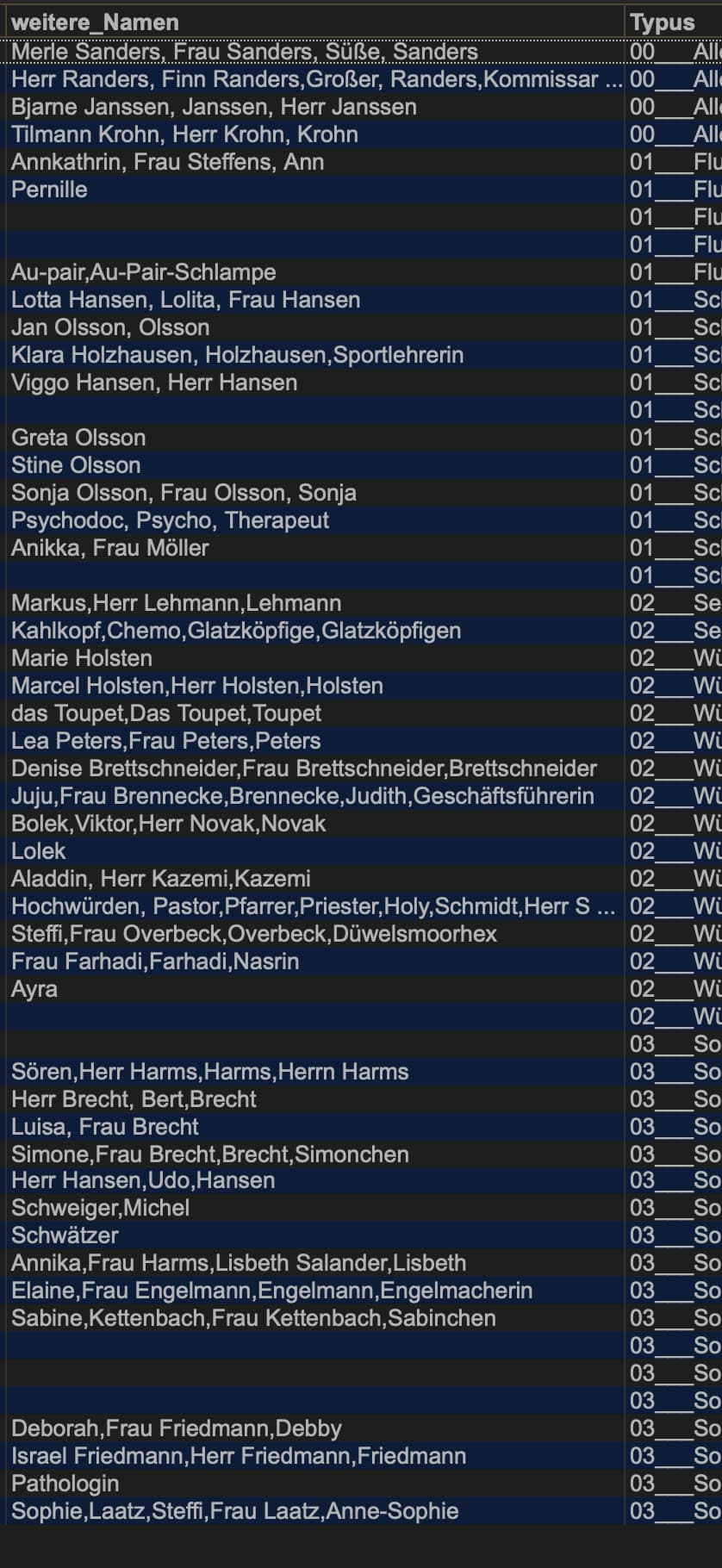 Das ist mir darum wichtig, da ich eine Reihe schreibe und mir vorsichtshalber alle Figuren (die namentlich erwähnt werden) speichere - da ich nicht weiß, ob ich irgendwann zukünftig auf diese zurückkommen möchte (oder schnell eine Info brauche).