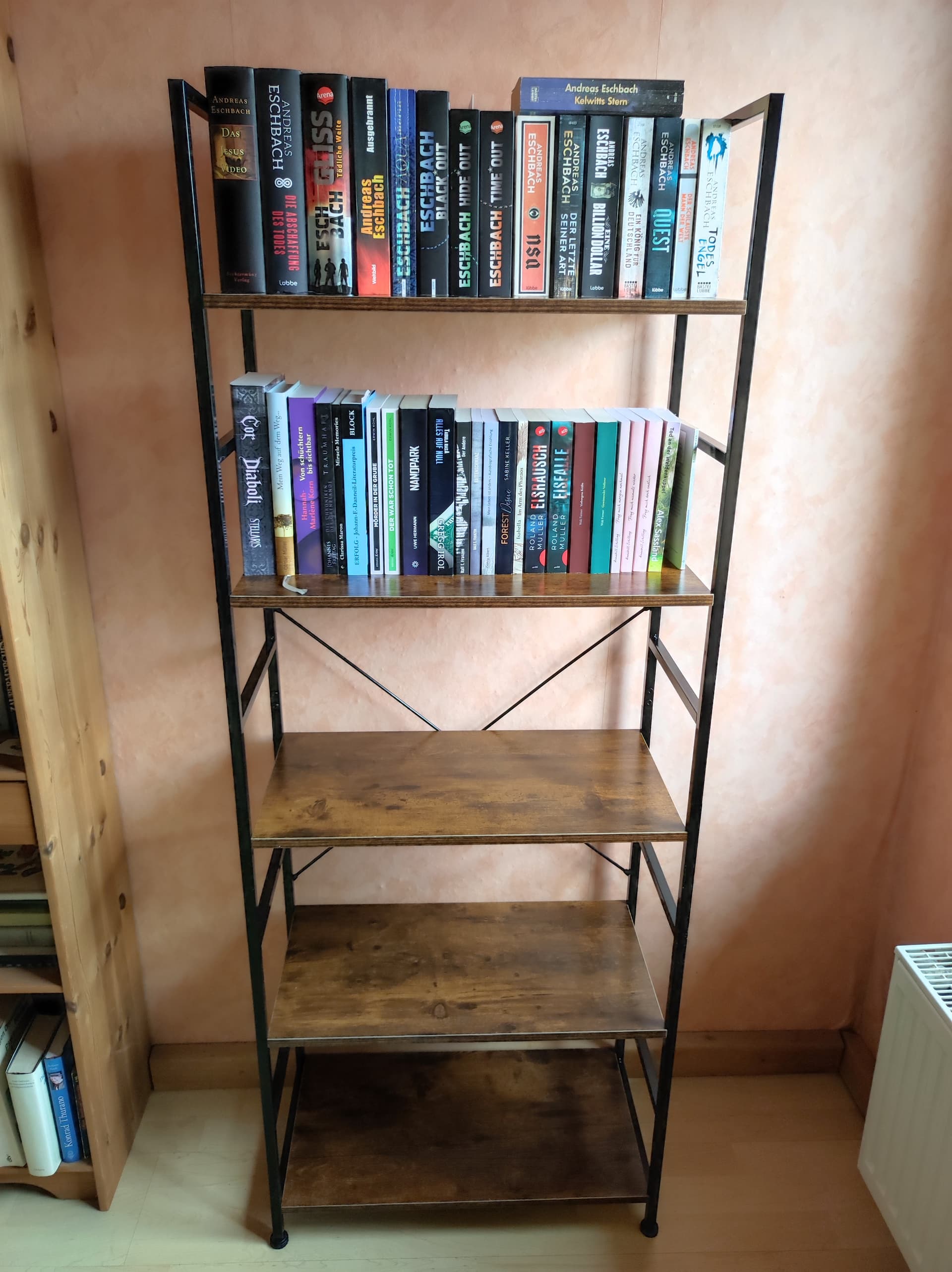 Habe soeben ein neues Bücherregal zusammen gedengelt. Dort sollen in erster Linie Bücher von Papyrus Foristen eine Heimat finden.