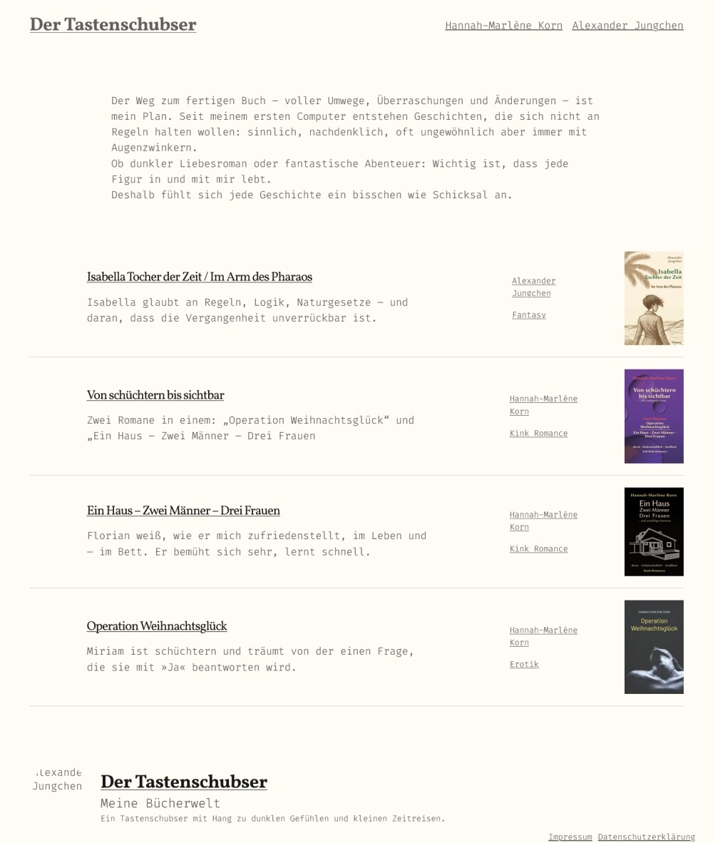 … mich von euch anstecken lassen und direkt mal meine Website aktualisiert. Der letzte Beitrag wäre sonst morgen ein Jahr alt geworden, nur die Wortgetreuen waren noch nicht so alt und haben sogar Zuwachs bekommen ![]()