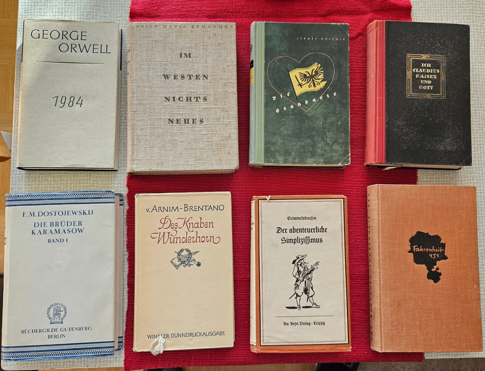So in etwa, ja. 1984 las ich schon 1976 - völlig überfordert und mit wochenlangen Alpträumen als Folge. Fahrenheit 451 dann etwas später, nachdem ich die wunderbare Verfilmung von Francois Truffaut mit Oskar Werner in der Hauptrolle gesehen habe.