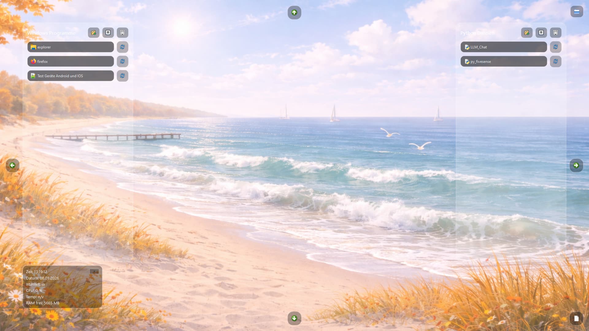 Ich habe mir die Tage einen eigenen Desktop für Windows programmiert. Der funktioniert wie ein fünfseitiger Würfel (also über die Mitte kann man andere Desktop erreichen, indem man auf dem Pfeil klickt)