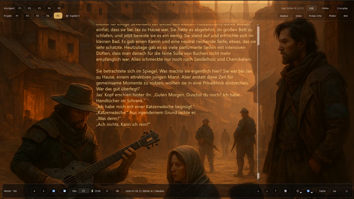 … die letzten Tage mein nicht käuflich erhältliches „Rohschriftschreibprogramm“ soweit optimiert, dass es „immer“ wie Schreibfokus aussieht, aber alle Funktionen schnell per Glaspanel einblenden kann (hier ausgeblendet) ![]()