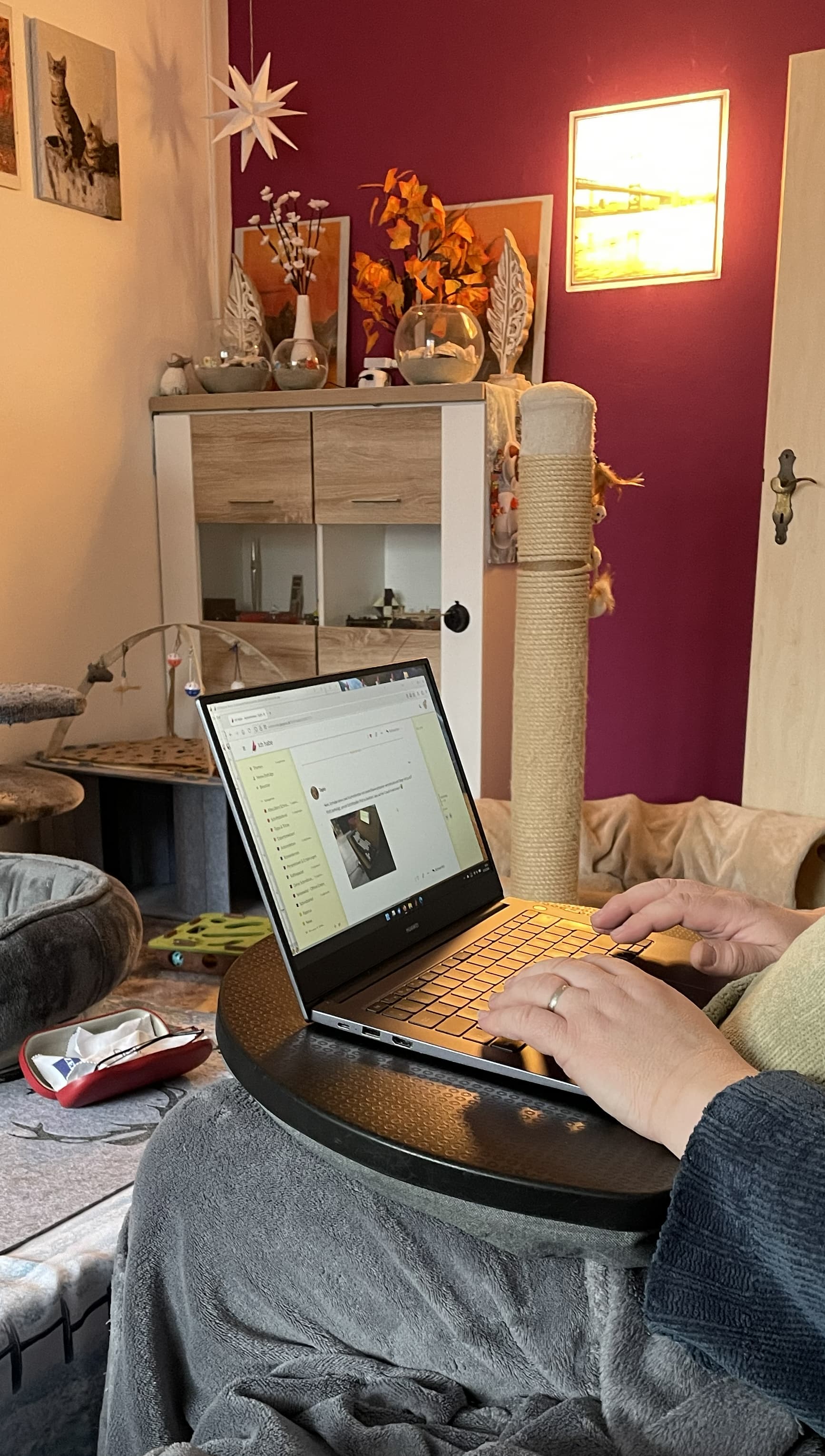 Darüber hinaus verfüge ich altes Weib sogar über den echten Luxus einer beheizbaren Tastaturunterlage – unverzichtbar bei blutleeren Eispfötchen wie den meinen!