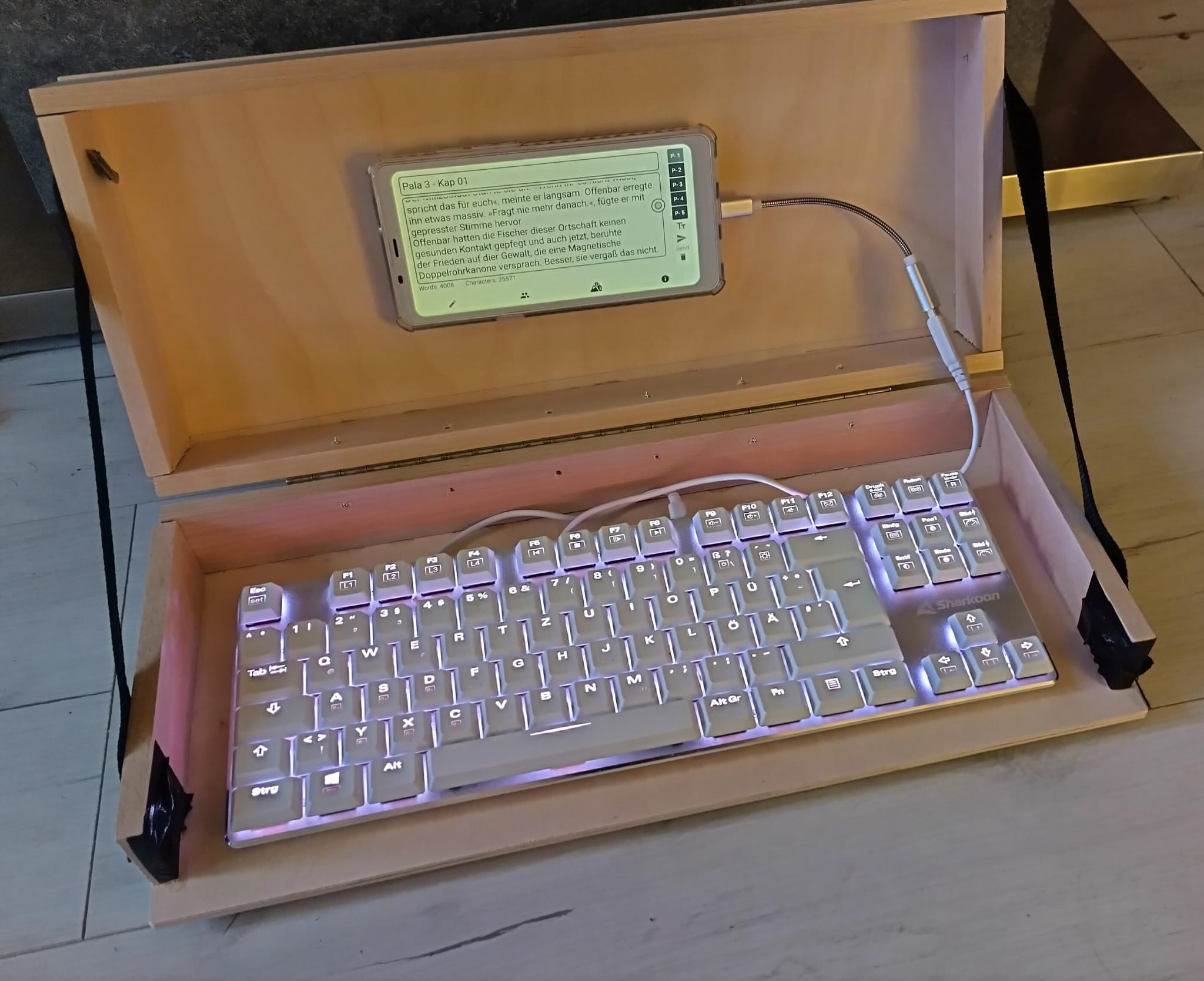 … Jetzt zusätzlich zur großen Schreibkiste, die halbwegs mobile Schreibkiste für unterwegs gezimmert.