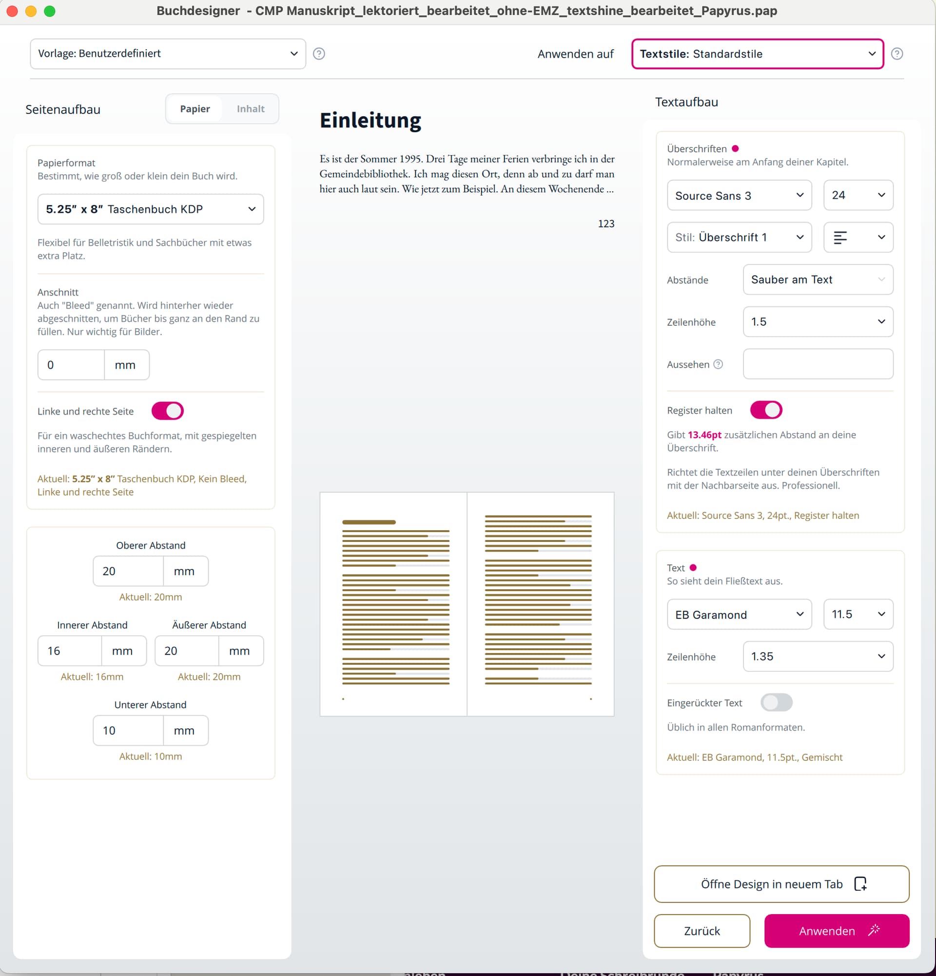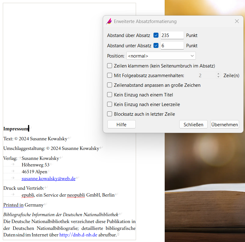 Das neue Buch ist komplett Pap12 und mein innerer Monk ist da ziemlich borstig. Er mag keine geänderten Arbeitsabläufe. Ich hoffe auf den Moment, wo er abgelenkt ist und mich mal den Buchdesigner probieren lässt.