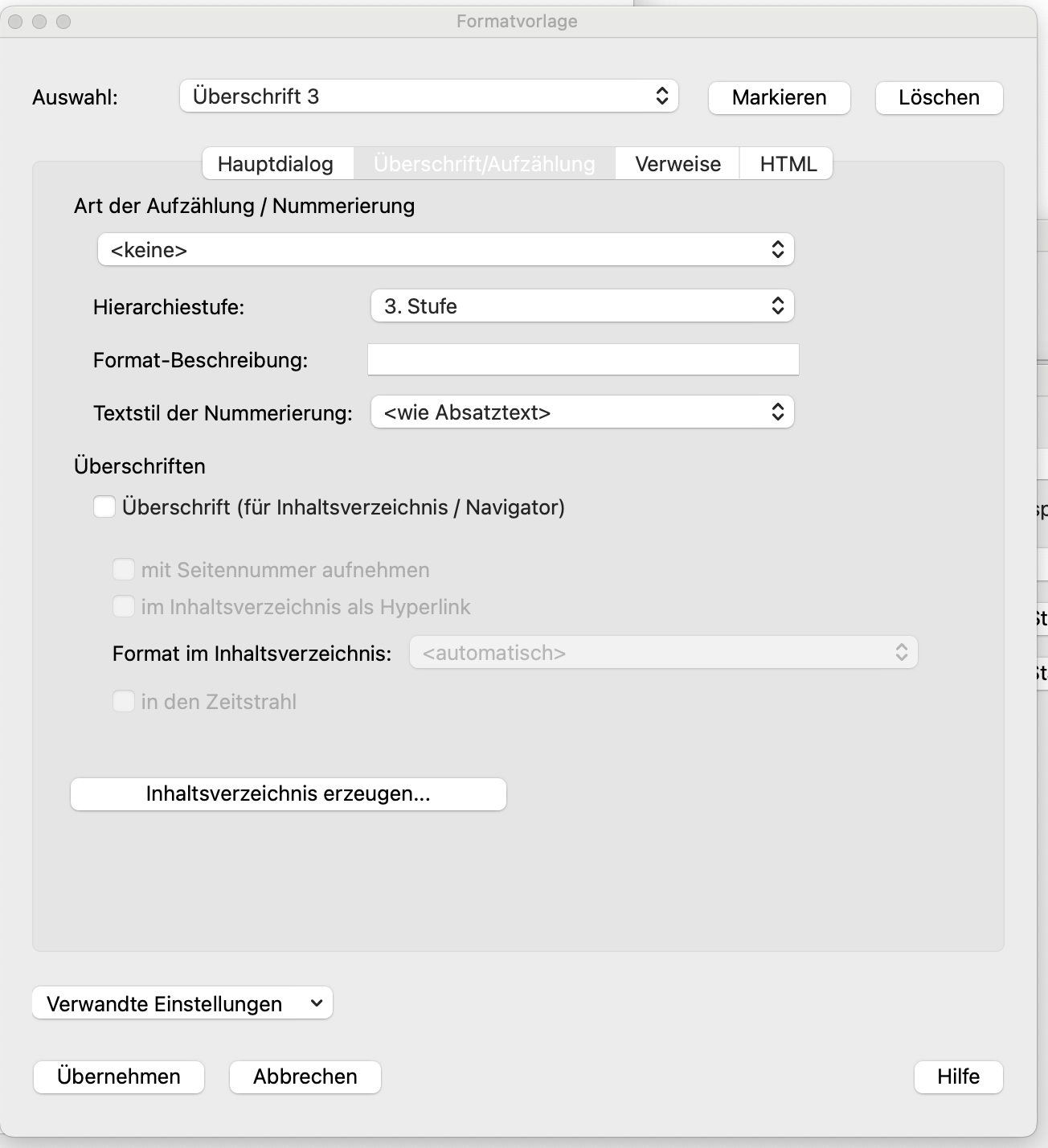 Muss ich dazu im Dokumenttext die Formatierung anders definieren (also nicht als Ü3, was zur Folge hätte, dass sie aus dem Navigator verschwinden würde, was für mich eine unsaubere Lösung ist) oder gibt es einen anderen Weg, der einfach nur Ü1 und Ü2 im IHV anzeigen lässt?