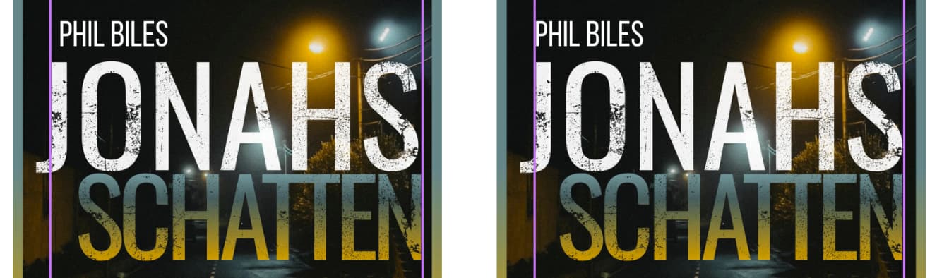 Das war der Effekt, den ich ursprünglich im Sinn hatte - nur nicht sauber gelöst. Ich wollte es etwas lockerer nach rechts versetzen, hatte aber nicht auf dem Schirm, dass es mit dem Wort „Schatten“ bündig sein sollte. Das mit dem Wort „Thriller“ und dem Autorennamen ist mir allerdings wirklich nicht aufgefallen, das ist aber bestimmt möglich.