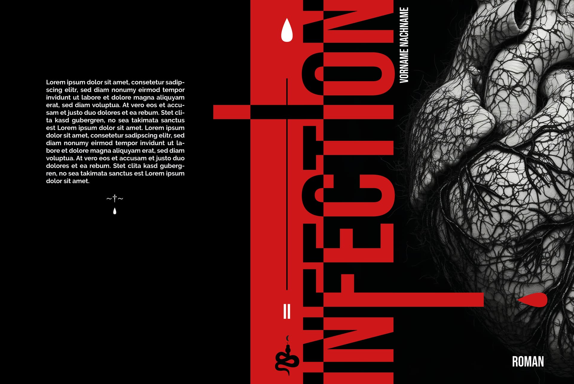 Hallo, man merkt, dass du dir Gedanken gemacht hast (zu viele, wie ich finde). Dein Cover wirkt professionell aber ist in meinen Augen überfrachtet. Die Haare auf dem Herzen stören mich wahnsinnig und falls es keine sind, stören sie mich trotzdem. Dann die drei Blutstropfen, die Schlange, der Mond! Was denn noch alles?