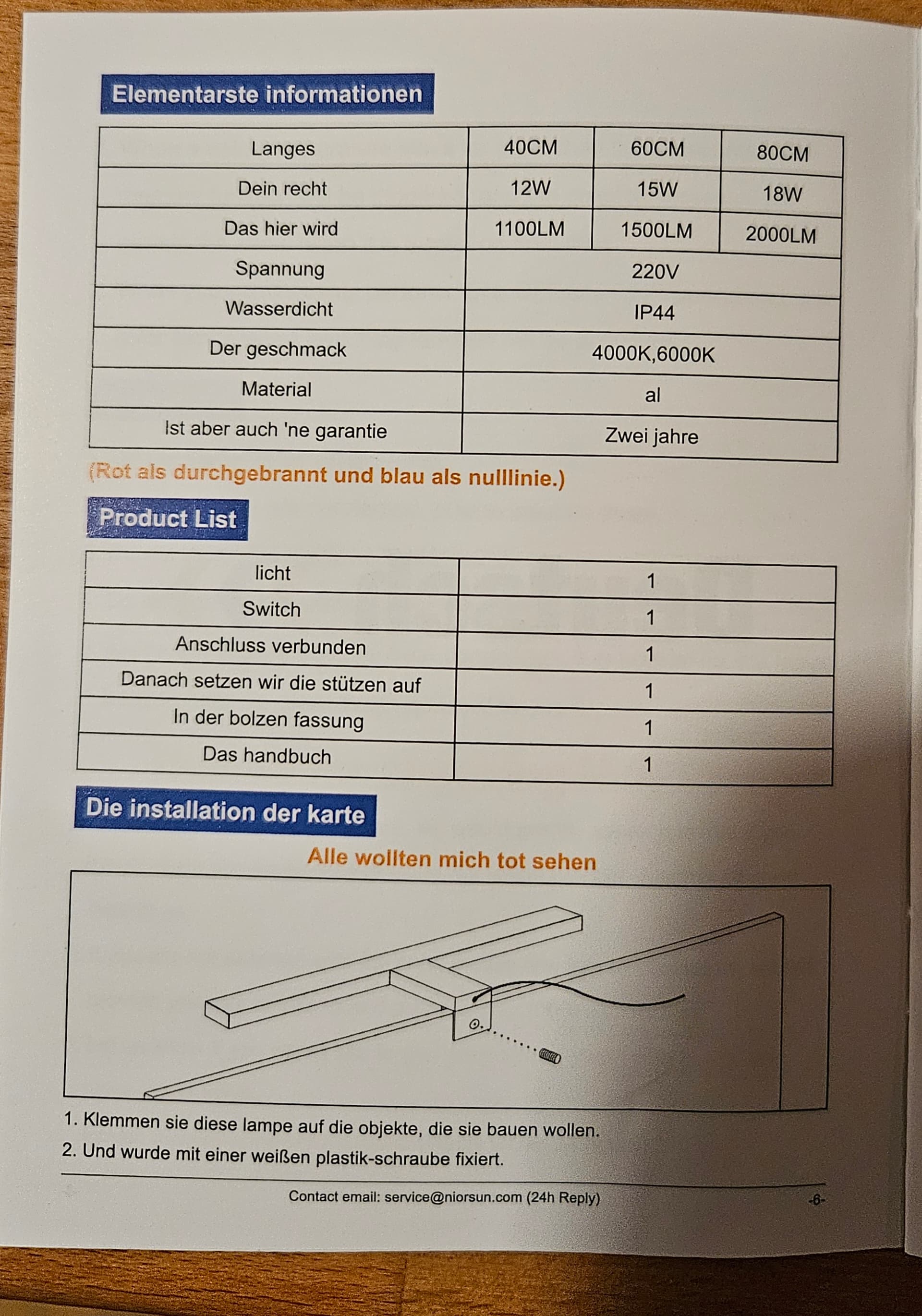 Hier die Montageanleitung der neuen Badezimmerleuchte (per KI aus dem Mittelhochfinnischem übersetzt). Mensch beachte vor allem das Rotgedruckte!