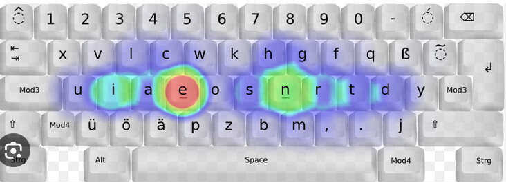 Hintergrund war hier, dass ich immer 10 Fingerschreiben lernen wollte - ich aber mit meinem Gamer 6 Fingersystem schon sehr schnell bin und nie „Den Grund“ hatte. Hinzu kamen, dass ‚echte‘ 10 Fingerschreiber Probleme mit Entzündungen bekommen, wegen der einseitigen Belastung der linken Hand (das wiederum mit dem qwertz layout zu tun hat, dass designt wurde, dass Schreibmaschinen nicht verklemmen)