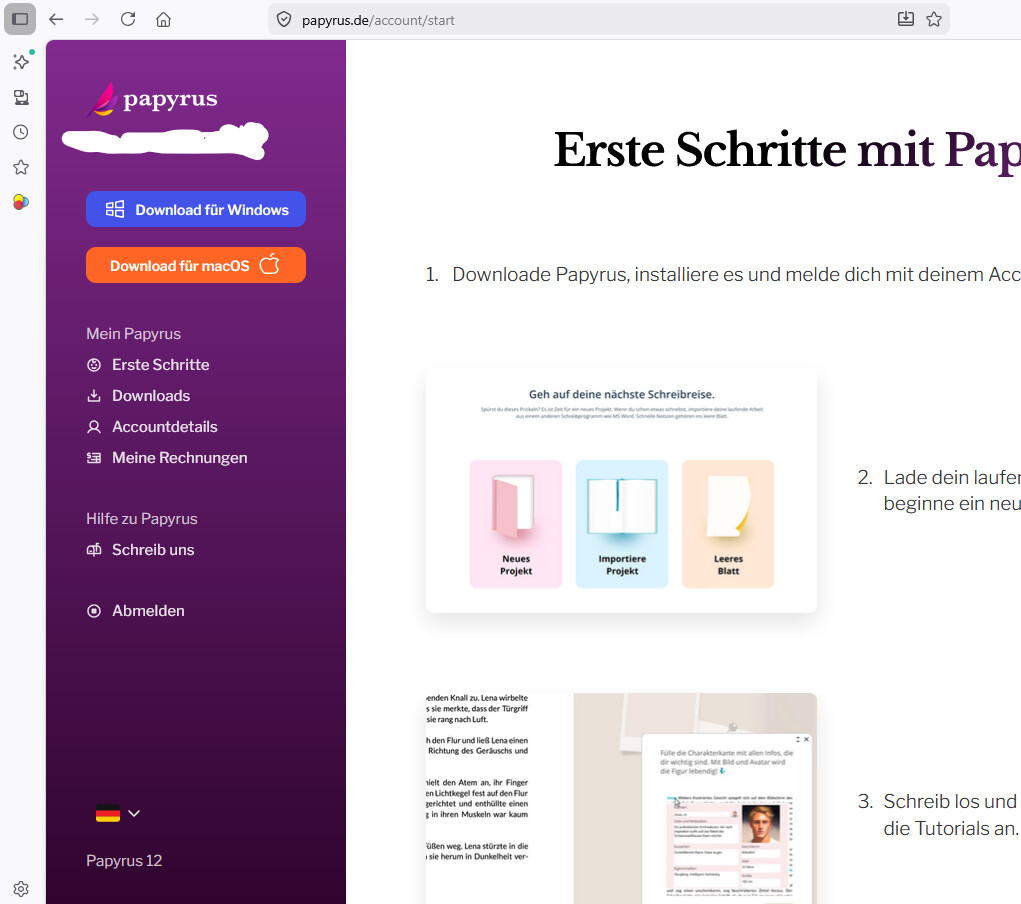 Meiner Erinnerung nach musst du auf der Papyrus Website „in meinen Account einloggen“