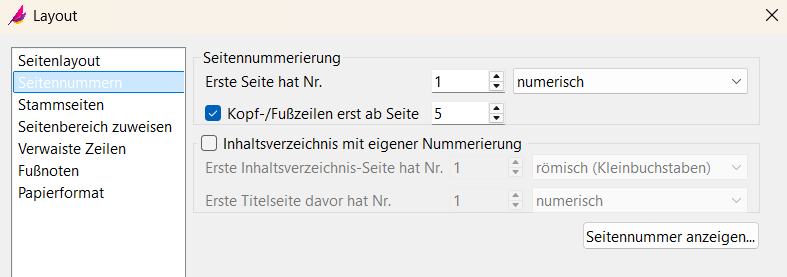 Über das Menü kannst du beliebig einstellen, ab wo die Nummerierung gezeigt werden soll und ab wo gezählt werden soll.