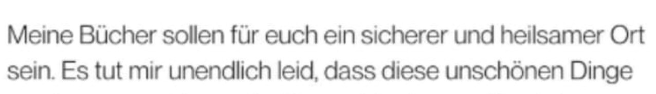 Wer solch einen Müll absondert und auf der Achtsamkeitswelle mitschwimmt, dem traue ich wesentlich schlimmere Sachen zu, als ein bisschen abzukupfern. Ich hasse die Autorin jetzt schon. Das Buch als heilsamen Ort darzustellen, das funktioniert bei den Leserinnen, die an den Kitsch, den sie schreibt, auch noch selbst glauben. Das hat man davon, wenn man selbst zu wenig Gehirnschmalz einsetzt, nach Vorgabe schreibt und sich dann wundert, dass jemand was dagegen hat. Der, dessen Gehirnschmalz geklaut wurde.