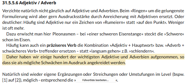 ich möchte meine Rohfassung analysieren um mein Schreiben zu verbessern und dazu mit Hilfe der Stilanalyse ALLE Adjektive und Adverbien in meinem Text finden.