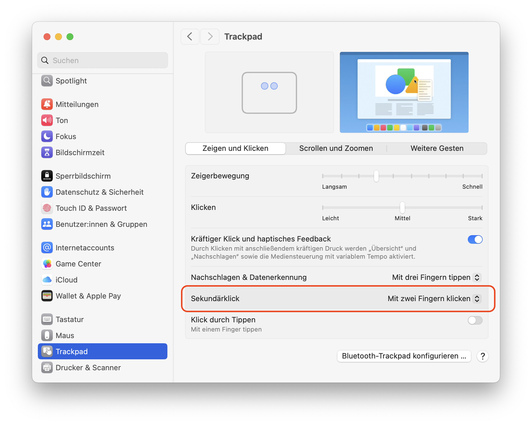 Für das Trackpad: