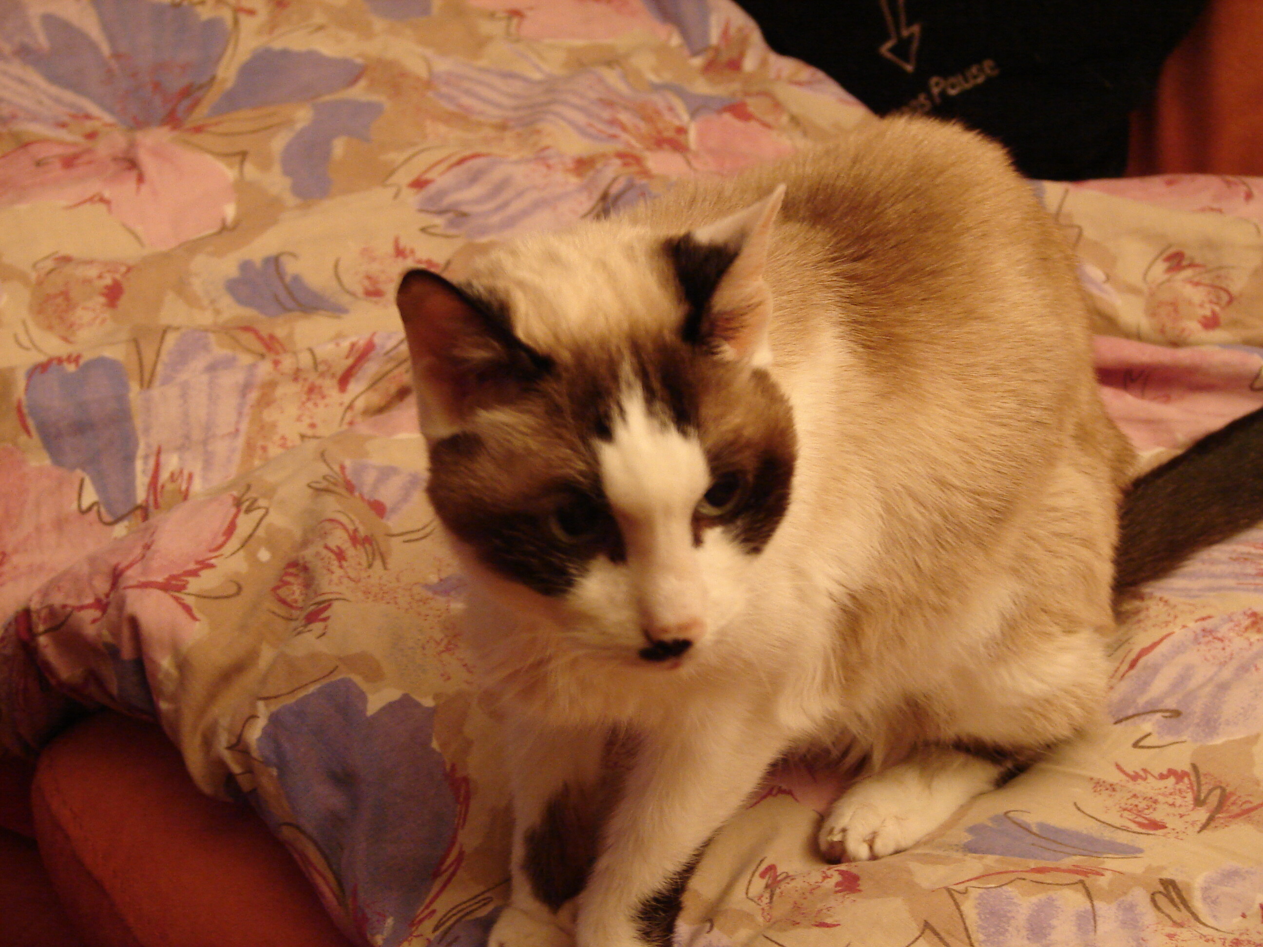 Sie ist fast zwanzig geworden, ich hatte sie schon als Mid-Ager- Katze bekommen. Ein Kunde von mir wollte sie nicht mehr - sowas!!!